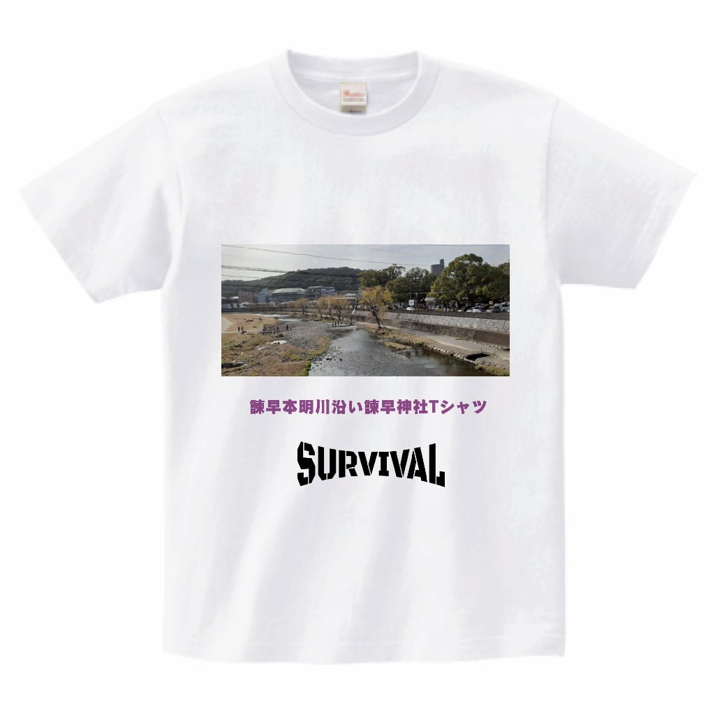 諫早本明川沿い諫早神社Tシャツ ホワイト
